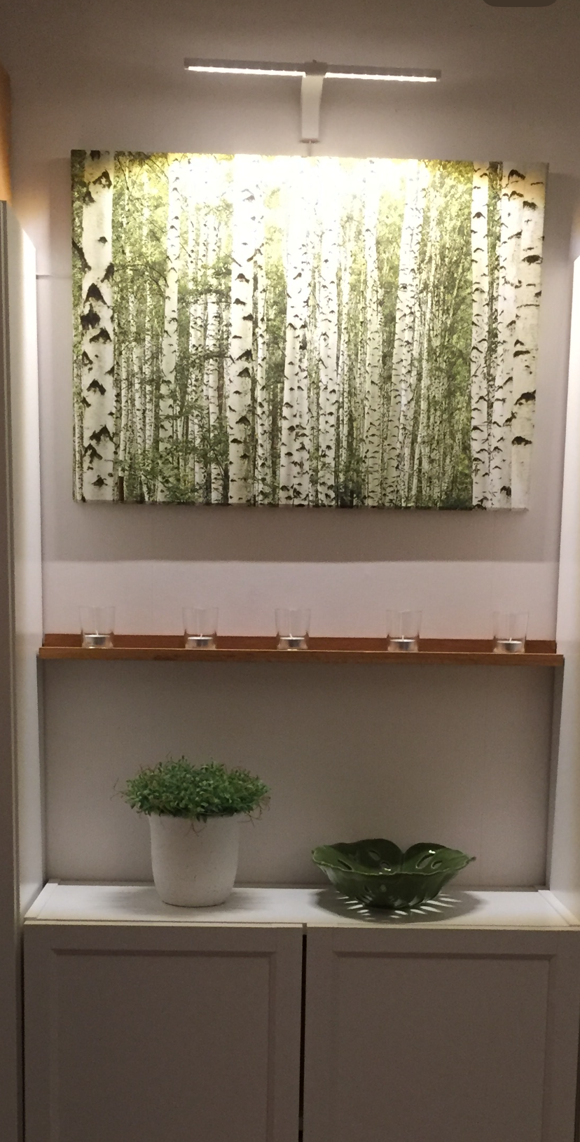 Accentbelysning kallas ibland även för konstbelysning. Sådan typ av belysning används för att framhäva detaljer i ditt hem, såsom tavlor, konstföremål, hyllor eller växter. Syftet med accentbelysning är att skapa ett visuellt intresse. Man kan använda exempelvis mindre spotlights, riktade vägglampor eller tavelbelysning.