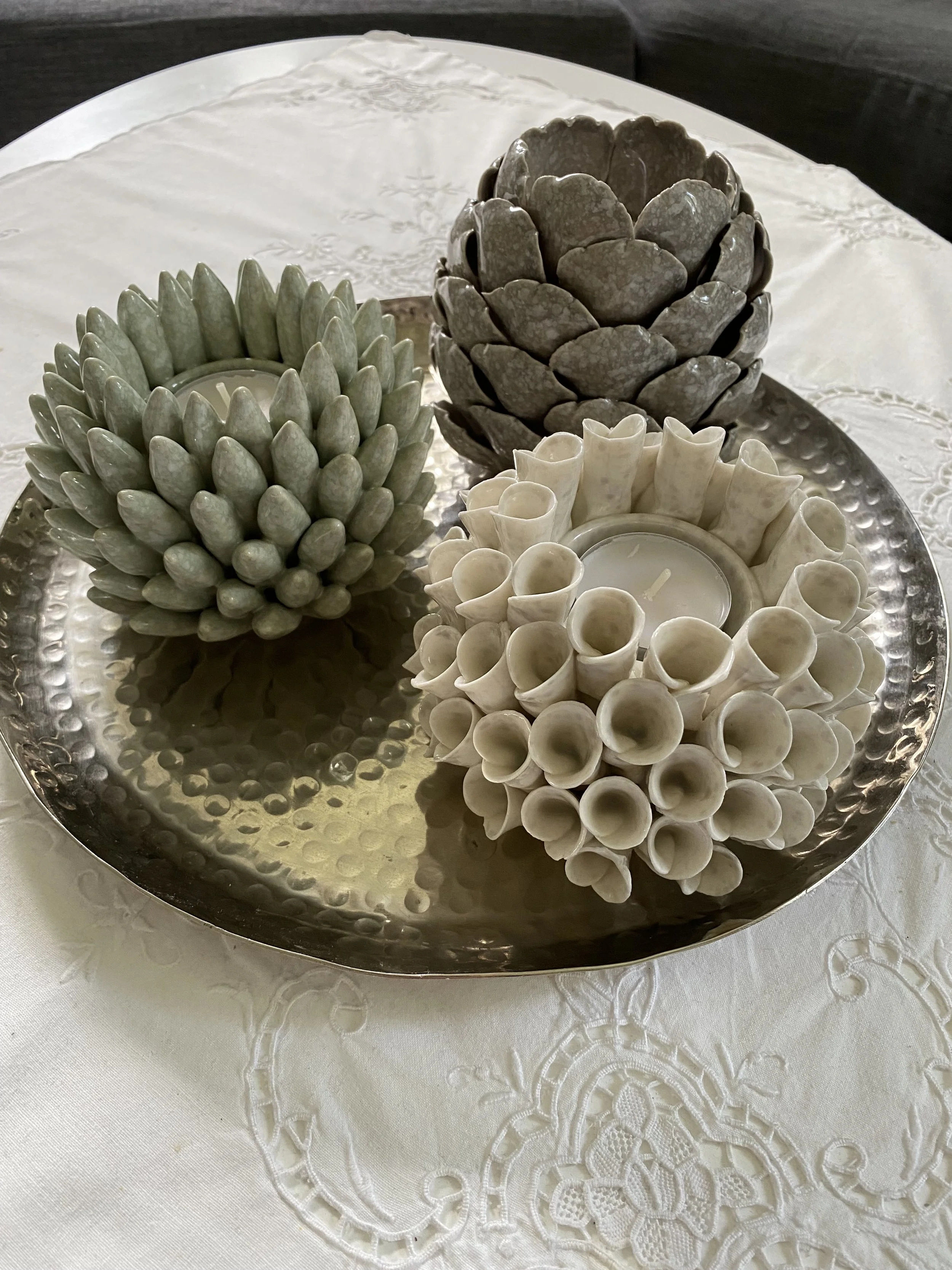 Anordna dina ljus så att de bildar ett fint stilleben tillsammans med andra dekorationer. Eller välj att bara ställa ihop ett antal ljushållare på en bricka så att de tillsammans bildar en enhet.